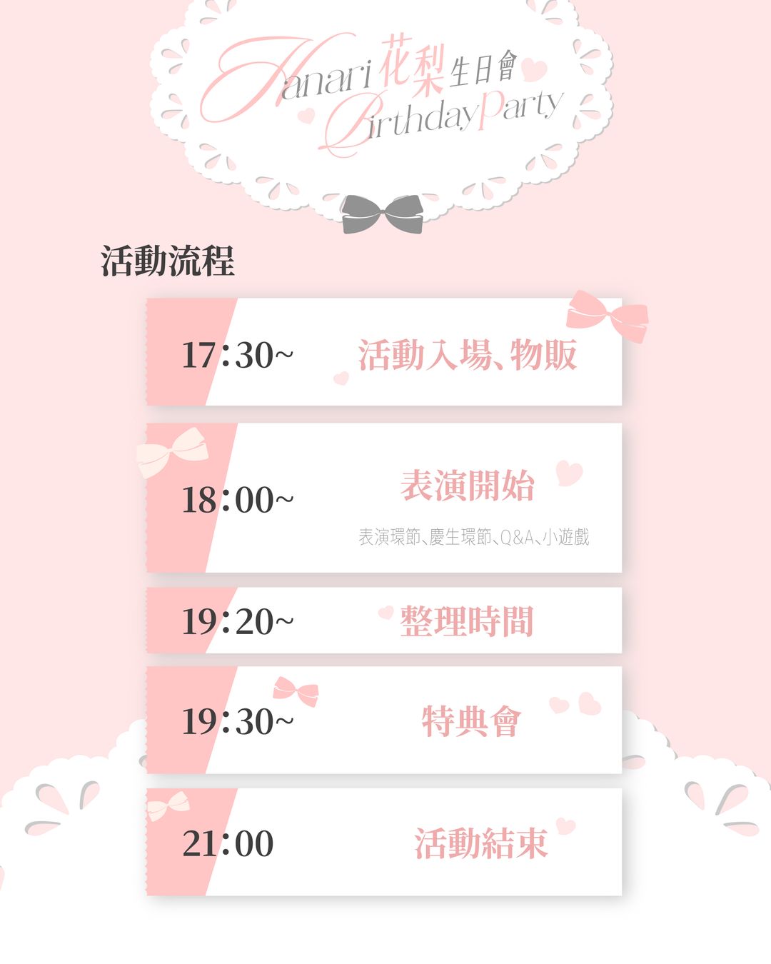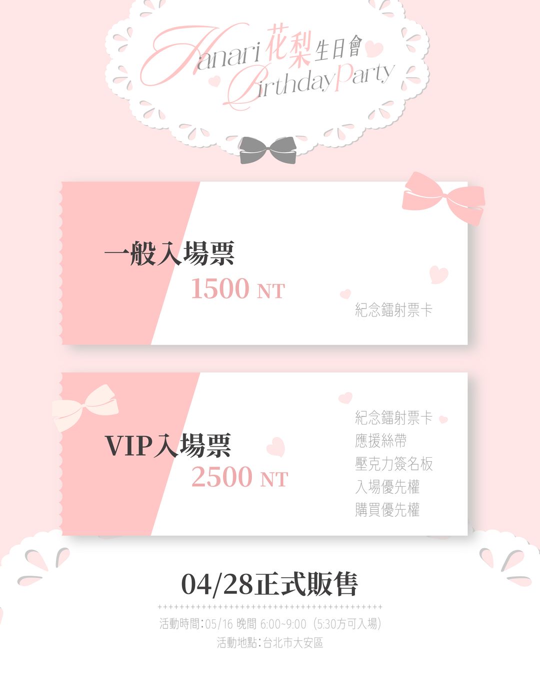 Event Has Not Started, Tickets Selling Fast花梨Hanari Birthday Party|0516 生日會2026/05/16 (六) 17:30 ~ 21:00 (UTC+8)臺北市 大安區信件通知Guest Speakers花梨HanariOrganizerCOSIR 叩舍 +886916666047cosirstudio@gmail.com